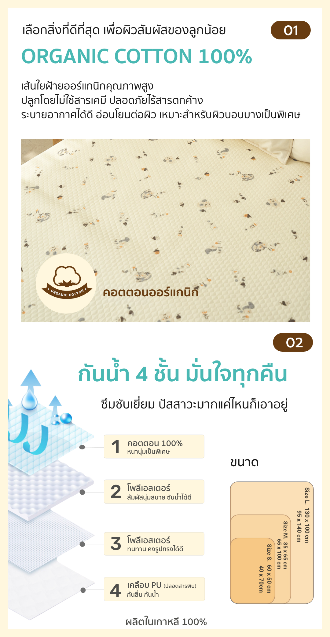 รายละเอียดสินค้า Lieto ผ้าปูรองนอน Organic Cotton 100%
