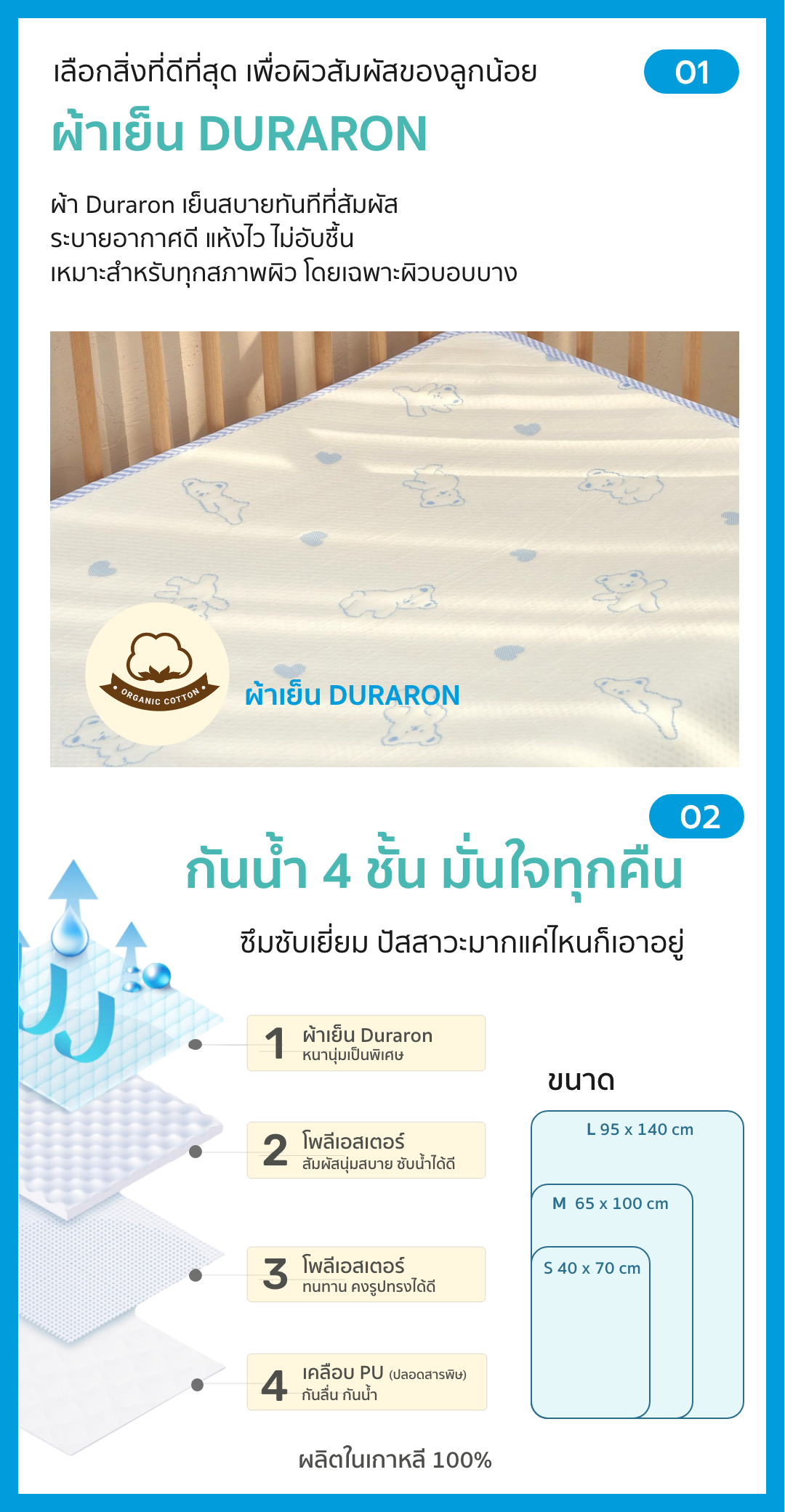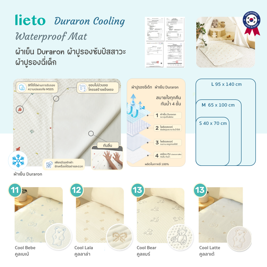 Lieto ผ้าเย็น Duraron ผ้ารองฉี่เด็ก แผ่นรองซับปัสสาวะ กันน้ำ เย็นสบาย ลาย คูลลาเต้ (Cool Latte)